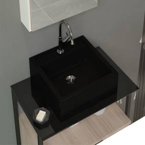 - 01 - gabinete mdf/mdp01 - cuba 01 - espelheira01 - par ferragens pretas01 - tampo vidro temperado 6mm01 - parafusos para fixação e ventosas