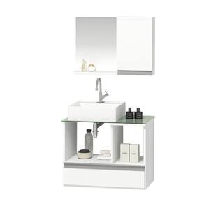 KIT BANHEIRO COMPLETO 60CM -GABINETE + CUBA + ESPELHEIRA + TAMPO VIDRO INCOLOR