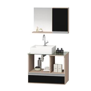 KIT BANHEIRO COMPLETO 60CM -GABINETE + CUBA + ESPELHEIRA + TAMPO VIDRO INCOLOR