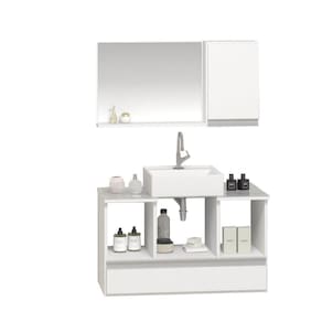 Modelo moderno, com puxador de alumínio tipo perfil. (igual móveis sob medida)Medidas gabinete: 80cm x 40cm x 50 (comp. / prof. / altura)Medidas da pia sobrepor : 34x34x11Medidas Espelheira : 80cm x 40cm x 14cm (comp. / altura / prof)Medida Tampo Vidro: 80cm x 40cm com 6mm espessura (vidro temperado)