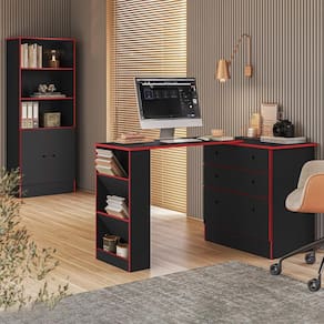 O Conjunto Gamer é formado por um Armário e uma Mesa Giratória para deixar o seu ambiente mais estiloso. O Armário Gamer foi produzido em MDP e conta com 2 portas com puxadores em furo, é um móvel multifuncional. A Cômoda com Mesa Giratória Gamer, um produto multiuso que tornará seus dias muito mais práticos e organizados. Use como cômoda, aproveitando o amplo espaço das gavetas para acomodar roupas, acessórios ou itens de estudo e home office; use também como mesa, seu tampo extensível projetado com um ângulo de 90, permite otimizar o espaço e oferecerá um local extra para trabalhar ou estudar.