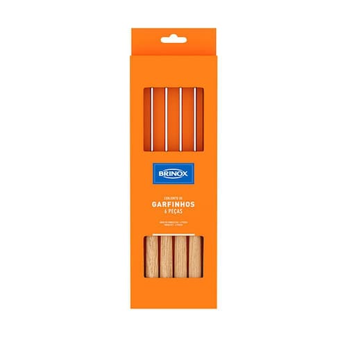 Conjunto Garfo Para Fondue 6 Peças Beli Madeira Brinox O conjunto de garfos para fondue é produzido em aço inox de alta qualidade e resistência. Seu cabo amadeirado conta com pequeno detalhe nas pontas, sendo cada um de uma cor: vermelho, amarelo, azul, verde, laranja ou roxo. Atende diversas ocasiões, sendo perfeito para fondues. Garfinhos em aço inox com cabo PP. Ideal para fondue de queijo ou chocolate. CUIDADOS: - Não vai ao micro-ondas - Vai à lava-louça - Não pode ser utilizada em fogões de indução - Não vai ao forno COMPOSIÇÃO: - 06 Garfos de 24cm para fondue ESPECIFICAÇÕES: - Material: Aço Inox + Plástico - Linha: Utensílios Beli - Tipo de produto: Servir - Peso: 0,11 Kg - Garantia: 90 dias para vícios e defeitos de fabricação