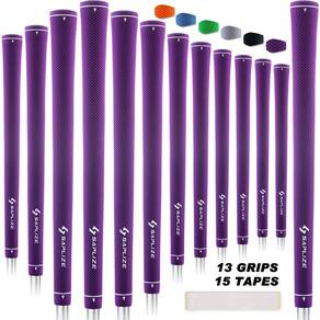 SAPLIZE Conjunto de 13 punhos de golfe de cor pura com fita ou kit completo de readerência, tamanho padrão/médio, seis cores disponíveis, punhos de borracha antiderrapante para clubes de golfe - 2 kits opcionais: a corrente é um kit de atualização, incluindo 13 pegas e 15 fitas de aderência. A fita é de fita de papel, fácil de descascar e menos resíduos para o seu próximo rearranque. É um tipo de fita adesiva de golfe tradicional - Design de cor pura: borracha de alta qualidade de fórmula especial. Resistente à abrasão, antiderrapante, alta estabilidade e boa absorção de choque. Adequado para todas as condições climáticas - Design cônico cientificamente: aderência com design afunilado tradicional, ajuda a reduzir a tensão da mão e libera mais potência na batida - Especificações de aderência: Padrão: Peso = 50 g, Núcleo f: 1,5 cm, Comprimento = 27 cm. Tamanho médio: Peso = 75 g, núcleo f: 1,5 cm, comprimento = 27 cm - Nota: Esta empunhadura não pode ser instalada em um eixo com diâmetro superior a 1,6 cm