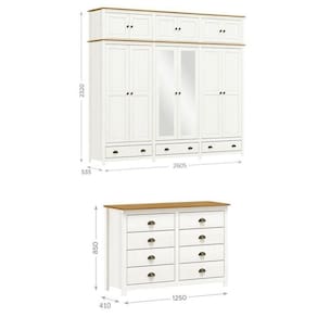 O Conjunto Topázio da Finestra Móveis oferece organização e sofisticação para quartos, é produzidos 100% em madeira maciça de pinus com acabamento em verniz PU/UV acetinado Branco/Freijó, garantindo durabilidade e elegância. A cômoda dispõe de oito gavetas espaçosas para roupas e itens pessoais, enquanto o guarda-roupa oferece amplo espaço com doze portas e múltiplas divisórias, ideal para organizar roupas, acessórios e mantê-las sempre à mão. Um conjunto completo que combina beleza, praticidade e funcionalidade para ambientes bem planejados. Suporta Até (kg): 70 kg Possui Rodízio: Não Altura do Conjunto: 232 cm Ambiente: null Ambiente Principal: Quarto Cor: Branco/Freijó Informação Complementar: 1x Cômoda 8 Gavetas Topázio 100% Madeira Maciça para Quarto Branco /Freijó Largura: 125 cm Altura: 85 cm Peso: 35 kg Profundidade: 41 cm Necessita Montagem: Sim