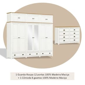 1x Guarda-Roupa Bipartido 12 Portas 3 Gavetas Topázio 100% Madeira Maciça Branco /Freijó Largura: 260,5 cm Altura: 232 cm Peso: 156,44 kg Profundidade: 53,5 cm Necessita Montagem: Sim