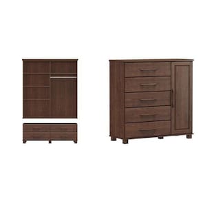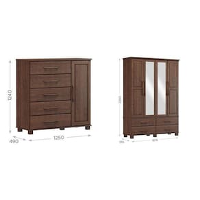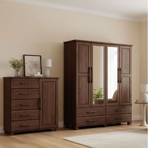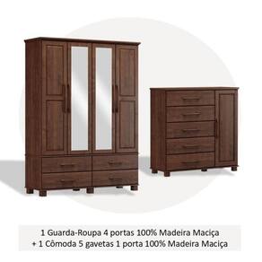 Conjunto Guarda Roupa 4 Portas + Cômoda 5 Gavetas 100% Madeira Maciça - Linha Ouro Finestra Móveis Café - Marrom