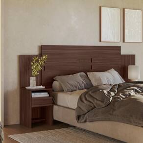 A Cabeceira contém duas mesas de cabeceira com duas prateleiras que são perfeitas para apoiar pequenos objetos como livros, celulares, etc.