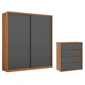 Conjunto Guarda Roupa Com Cômoda, imponente veio pra trazer beleza e grande capacidade de acomodação e organização para roupas e pertences, possui estrutura em MDP de 12mm e 15mm, acabamento em pintura UV (Fosco). Roupeiro equipado com 02 portas de correr com trilhos superior e inferior em alumínio, com movimentos de abre e fecha suave e com muito mais durabilidade, sistema de cores flex, você tem duas opções de cores para escolher na hora da , conta com 03 gavetas internas com corrediças telescópicas que garantem um fechamento super leve e suave, puxadores moderno em alumínio com acabamento na cor bronze, divisórias internas estilo colméia com muito espaço para seus pertences, maleiros espaçoso, cabideiros e calceiros em aluminio com espaço para roupas longas, nichos inferiores ideiais para sapatos, a Cômoda possui 04 gavetas com corrediças telescópicas que favorecem o manuseio e proporciona um fechamento leve e perfeito, puxadores em angulo cavados garante praticidade além de muito estilo, o visual moderno deste conjunto oferece sofisticação e bom gosto para a decoração do seu espaço. Estes móveis chegarão em sua casa separados em 05 volumes.