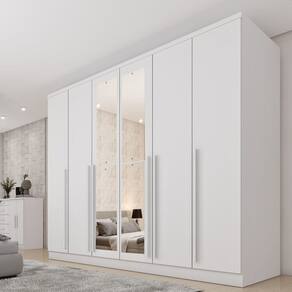 1x Guarda Roupa Casal 6 Portas 8 Gavetas Puxador MDF 270cm com Espelho Portugal Neve