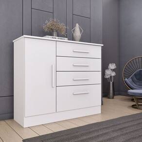 1x Cômoda 1 Porta 4 Gavetas 104cm Chicago Neve