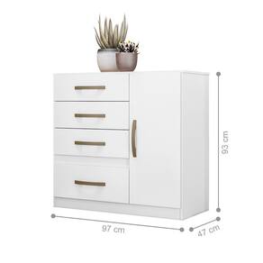 A Cômoda dispõe quatro gavetas com amplo espaço para acomodar todas suas roupas, com um espaço para organizar seus sapatos.