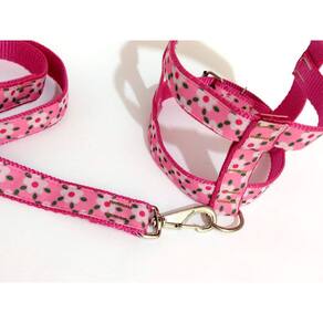 Peitoral de nylon 25 mm rosa floral com fivela de metal; Guia de nylon 25 mm rosa floral; Mosquetão com trava de segurança; Cor rosa. Tamanho: nº 6. Praticidade, conforme para seu pet de pequeno a médio porte. Passei com estilo e elegância. Medidas aproximadas: Pescoço 47 cm Tórax 50 à 62 cm. Guia 90 cm. Marca: Nica pet Ean: 7430132296751