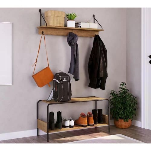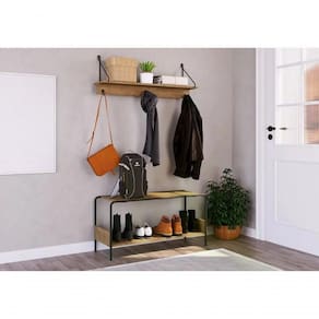 Conjunto Banco E Prateleira para porta de entrada. Com um design moderno e elegante, ideal para manter sua entrada, sala ou quarto organizado e livre de desordem. Banco com estrutura metálica em aço carbono de tubo redondo de diâmetro 15mm e pintura epóxi anticorrosiva fosca. Prateleiras em MDP de 15mm, acabamento em pintura BP na cor Vermont (Fosco). Prateleira conta com suporte em arame metálico com 8mm e 3 ganchos. Banco possui ponteira plástica no tubo para não riscar o piso, proporciona conforto para você calçar e descalçar seus sapatos e ainda proteger sua casa da contaminação trazida da rua. Mais produtos da Artesano, você encontra em nosso site, podendo fazer a composição completa para sua casa, são diversos itens com design prático e funcional para tornar a sua vida mais facil, a casa mais alegre e o conforto mais próximo. Este móvel chegará em sua casa separado em 02 volumes.