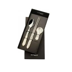 Este conjunto da Linha Aladdin da Bugatti engloba dois pauzinhos de arroz, um suporte e uma colher em aço inoxidável para garantir durabilidade incomparável.