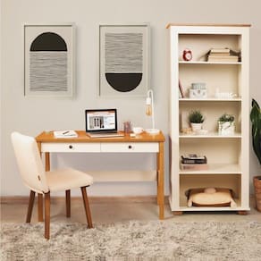 1x Estante para Livros 4 Prateleiras Ananda Off White/Mel Largura: 78 cm Altura: 178,2 cm Peso: 38,3 kg Profundidade: 41,2 cm Necessita Montagem: Sim