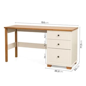 A linha Ananda é uma linha de escritório no estilo clássico, com priorização de funcionalidade e a possibilidade do cliente em montar um ambiente de trabalho com estilo e elegância. Conta com Escrivaninha de 150cm com 3 gavetas com corrediças telescópicas e 1 Estante Alta para Livros com 4 prateleiras. Altura do Conjunto: 178.2 cm Ambiente: null Ambiente Principal: Escritório Cor: Off White/Mel Informação Complementar: 1x Escrivaninha 150cm 3 Gavetas Tampo Pés em Madeira Maciça Pinus Ananda Off-white/Mel Largura: 150 cm Altura: 77,3 cm Peso: 39 kg Profundidade: 50 cm Necessita Montagem: Sim