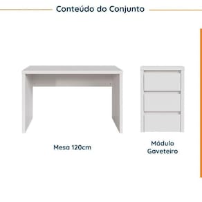 Conjunto Home Office 2 Peças 1 Mesa 120cm 1 Gaveteiro CabeCasa MadeiraMadeira Branco