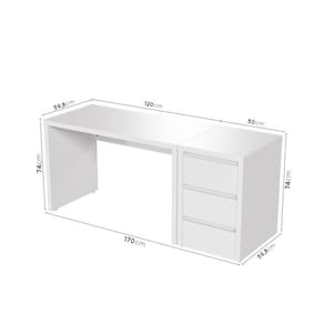 Informação Complementar: 1x Escrivaninha Reta Modular Ficus 1,20m BrancoLargura: 120 cmAltura: 74,1 cmPeso: 28,33 kgProfundidade: 59,8 cmNecessita Montagem: Sim1x Gaveteiro Modular 50cm Ficus BrancoLargura: 50 cmAltura: 75,6 cmPeso: 29,2 kgProfundidade: 59,8 cmNecessita Montagem: Sim