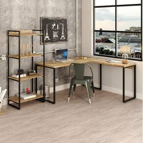 O conjunto Home Office é composto por 2 peças, sendo uma escrivaninha em L e uma estante com 4 prateleiras. A linha Kuadra tem seu design com inspiração no estilo industrial, que remete muito a decoração utilizada nos lofts das grandes metrópoles nos anos 60 e 70. Harmonizando o metal e os tons de madeira, foram projetados móveis versáteis e com estilo, que podem compor ambientes flexíveis e cheios de personalidade. Suas estruturas são fabricadas em aço, com soldas suavizadas e pintura texturizada epóxi-pó, conta com pés niveladores de altura e parafusos na cor preta. Medidas Escrivaninha 4966: 75x150x60cm (AxLxP) Medidas Estante 5021: 145,8x60x40cm (AxLxP) Cor: Carvalho Possui Portas: Não Possui Portas: Não Possui Rodízio: Não Possui Rodízio: Não