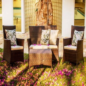 Nossos produtos são de altíssima qualidade e com design moderno, garantindo assim conforto e praticidade para seu bem-estar. Produzidos em estrutura de alumínio revestida em fibra sintética. Possuem proteção UV, aumentando sua durabilidade contra ações do tempo. Ideais para decorar ambientes clássicos e modernos como: Cozinha, Sala, Quarto, Varanda, Edícula, Piscina, Jardim, Área de lazer, Festa, Reunião, Churrasco. Medidas