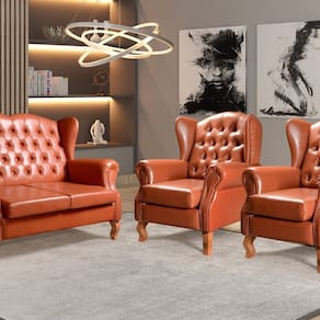 Não rasgue a embalagem antes de ter certeza que ficará com tudo. Produto Montado: Sim Acompanha Almofadas extras: Não Almofada do assento: Não Possui Almofada do encosto: Não Possui Altura do assento até o chão: 45.0000 Altura do Encosto: 102 cm Ambiente Principal: Sala de Estar codigo_ean: 7909903727065 Complexidade da Montagem: Baixa: pode ser montado por uma pessoa sozinha Cor: Caramelo Cor do Produto: Caramelo Estilo de Braço: Braços Redondos Informações Complementares: 120Kg por acento Itens Inclusos: 1 Sofá Imperador 3 Lugares + 2 Poltronas Imperador 1L + Conjunto de Pés Linha ou Coleção: Imperador Necessita Montagem: Sim Origem do Produto: Nacional Peso: 70 kg Pet Friendly: Não Possui Percintas Elásticas: Sim Possui Pés: 04 Possui Rodízio: Não Quantidade de Itens: 3 Recomendações de Uso, Manutenção e Limpeza: Limpeza e cuidados: pode ser utilizado aspirador de pó, escova com cerdas macias ou limpeza a seco. Não utilizar produtos químicos, abrasivos ou limpeza a vapor. Evitar exposição prolongada ao sol. Sistema de Montagem: Enroscar os Pés Suporta Até (kg): 120 kg Tecido Predominante: Couro Sintético Tipo de Encosto: Fixo Tipo de Mola: Não Possui