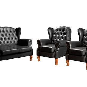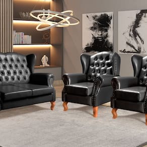 Não rasgue a embalagem antes de ter certeza que ficará com tudo. Produto Montado: Sim Acompanha Almofadas extras: Não Almofada do assento: Não Possui Almofada do encosto: Não Possui Altura do assento até o chão: 45.0000 Altura do Encosto: 102 cm Ambiente Principal: Sala de Estar codigo_ean: 7909903727041 Complexidade da Montagem: Baixa: pode ser montado por uma pessoa sozinha Cor: Preto Cor do Produto: Preto Estilo de Braço: Braços Redondos Informações Complementares: 120Kg por acento Itens Inclusos: 1 Sofá Imperador 3 Lugares + 2 Poltronas Imperador 1L + Conjunto de Pés Linha ou Coleção: Imperador Necessita Montagem: Sim Origem do Produto: Nacional Peso: 125 kg Pet Friendly: Não Possui Percintas Elásticas: Sim Possui Pés: 04 Possui Rodízio: Não Quantidade de Itens: 3 Recomendações de Uso, Manutenção e Limpeza: Limpeza e cuidados: pode ser utilizado aspirador de pó, escova com cerdas macias ou limpeza a seco. Não utilizar produtos químicos, abrasivos ou limpeza a vapor. Evitar exposição prolongada ao sol. Sistema de Montagem: Enroscar os Pés Suporta Até (kg): 120 kg Tecido Predominante: Couro Sintético Tipo de Encosto: Fixo Tipo de Mola: Não Possui