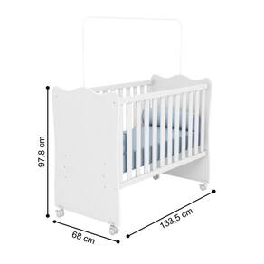 O berço é feito em MDP 15mm. Não acompanha colchão (comporta colchão de 10x130x60). Acompanha kit de rodízios para facilitar o manuseio do produto