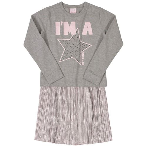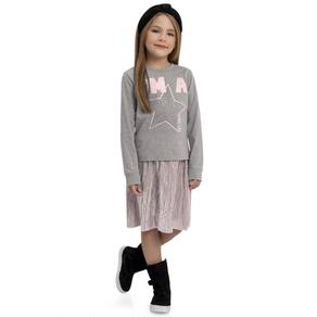 Conjunto Infantil Menina Blusa Manga Longa e Saia Midi em Tecido Mescla Cinza Quimby Ref. 28231