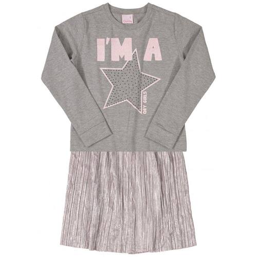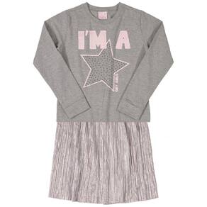 Conjunto Infantil Menina Blusa Manga Longa e Saia Midi em Tecido Mescla Cinza Quimby Ref. 28231