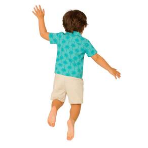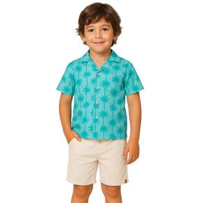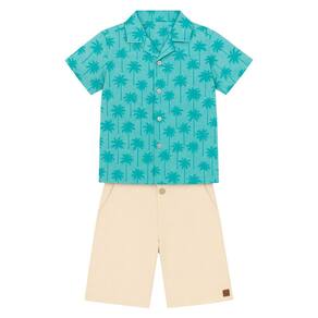 Deixe seu pequeno ainda mais estiloso neste verão com o conjunto infantil masculino composto por camisa azul estampada com coqueiros e shorts bege claro. A camisa de manga curta é confeccionada em tecido leve, com fechamento por botões, proporcionando conforto e frescor nos dias quentes. O shorts, feito em tecido macio, conta com cós ajustável e bolsos funcionais, garantindo praticidade e liberdade de movimento. Ideal para passeios, festas e momentos de lazer, este conjunto une estilo, conforto e qualidade.