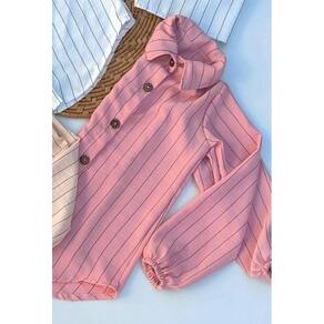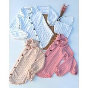 Conjunto feminino infantil moda blogueirinha, super estiloso. Camisa listrada risco de gis com elástico no punho e fechamento em botões, cropped com alças trasversal. As peças também podem ser usadas separadamente.