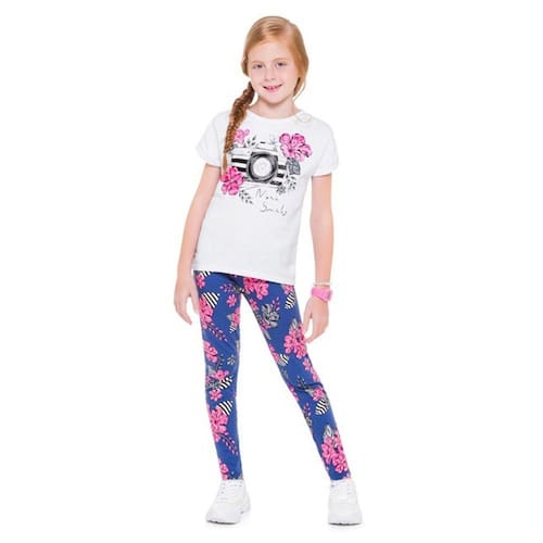 Conjunto Infantil Feminino Kyly é composto por Blusa em Meia Malha e calça legging.
