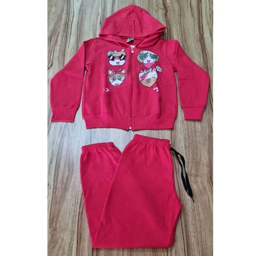 Conjunto Infantil Feminino Inverno Animais Vermelho 8.
