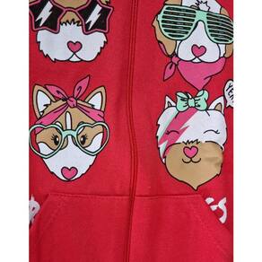 A blusa em tom vermelho vibrante traz estampa divertida de animais, encantando as pequenas com um toque lúdico e fofo.