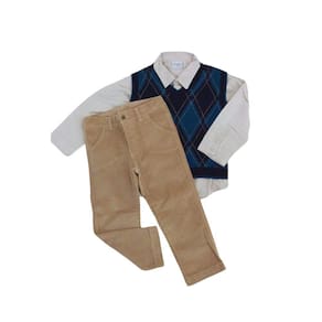 Pense num conjunto maravilhoso e quentinho,calça veludo bege,camisa natural e colete de lã azul, clássico. Noruega é tudo de bom!! Perfeito para ocasiões especiais como aniversários, casamentos e festas em geral, ou simplesmente para dar um rolê babando na sua lindezura . Traz muita naturalidade e leveza que certamente vão encantar nossos pequenos. Coleção inspirada em cores e materiais do Brasil e Europa.Tudo pensado e desenvolvido com muito carinho.