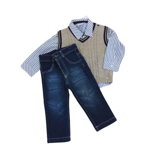 Pense num conjunto maravilhoso e descolado,calça jeans macia,camisa listras azul e colete de lã cinza , clássico. Noruega é tudo de bom!! Perfeito para ocasiões especiais como aniversários, casamentos e festas em geral, ou simplesmente para dar um rolê babando na sua lindezura . Traz muita naturalidade e leveza que certamente vão encantar nossos pequenos. Coleção inspirada em cores e materiais do Brasil e Europa.Tudo pensado e desenvolvido com muito carinho.