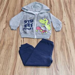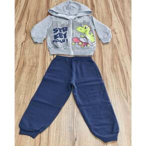 Conjunto Infantil Masculino Inverno Com Capuz Cinza Dino 1.