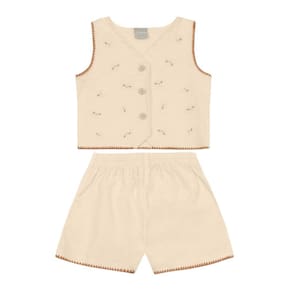 Deixe sua pequena ainda mais estilosa com o conjunto infantil da Mundi, confeccionado em sarja linho. O colete apresenta gola V, abertura frontal com botões e um bordado delicado que traz charme ao look. O shorts conta com cós elástico, garantindo conforto e liberdade para brincar. Perfeito para dias quentes, esse conjunto é ideal para compor looks fresquinhos e cheios de estilo. Aposte na linha premium da Mundi e encante sua menina!