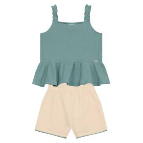 Encante-se com o conjunto infantil da Brandili, perfeito para as pequenas fashionistas! A blusa, confeccionada em ribana de cor lisa, apresenta um delicado babado na barra e nas mangas regatas, além de um elegante decote quadrado. O shorts em moletinho, com detalhes de costura e cós elástico, garante conforto e liberdade para brincar. Invista nesse look charmoso que fará sucesso em qualquer ocasião, proporcionando estilo e praticidade para as meninas!