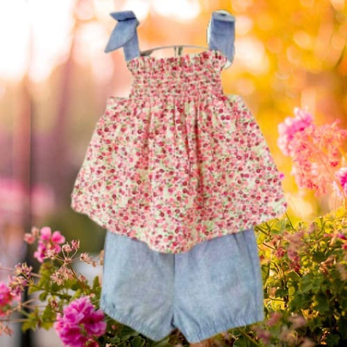 🌸 Conjunto Infantil Menina Floral Blusa de Alcinha e Shorts Azul 🌸