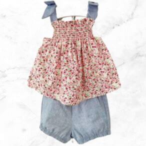 Características do Conjunto Infantil Menina Floral Blusa de Alcinha e Shorts Azul: