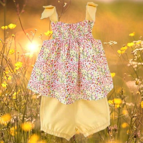 Características do Conjunto Infantil Menina Floral Blusa de Alcinha e Shorts Amarelo:
