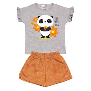 Shorts: O conjunto inclui shorts confeccionado em moletinho liso ou trabalhado conforme a cor escolhida dependendo das preferências e do estilo da criança. Os shorts possuem cintura elástica para facilitar a colocação e são confeccionados em tecido leve e respirável.