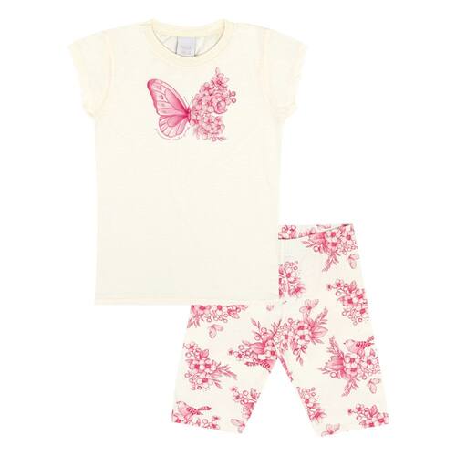 Look ideal para brincar, pular e aproveitar o dia quente e ensolarado! Conjunto charmoso e cheio de estilo para as amantes de borboletas e flores, composto por blusa meia malha na cor rosa pó com estampa de borboleta com flores em strass e bermuda ciclista em cotton leve com estampa digital pink de broboleta com flores. Sua fashionista irá adorar!