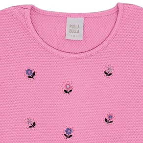 O dia de calor pede um look charmoso e fresquinho para curtir um passeio com a vovó! Conjunto composto por blusa e short meia malha na cor pink. A blusa possuí estampa bordada de flores com strass e o short possuí elastano na cintura para maior conforto e movimentação.