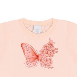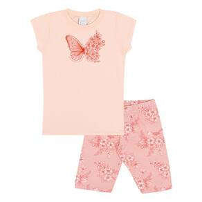 Look ideal para brincar, pular e aproveitar o dia quente e ensolarado! Conjunto charmoso e cheio de estilo para as amantes de borboletas e flores, composto por blusa meia malha na cor off white com estampa de borboleta com flores em strass e bermuda ciclista em cotton leve com estampa digital rosê de broboleta com flores. Sua fashionista irá adorar!