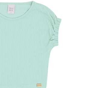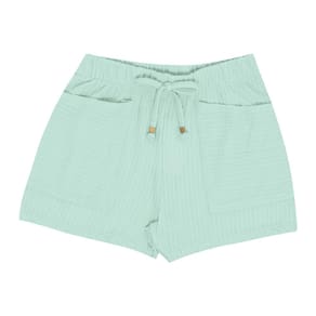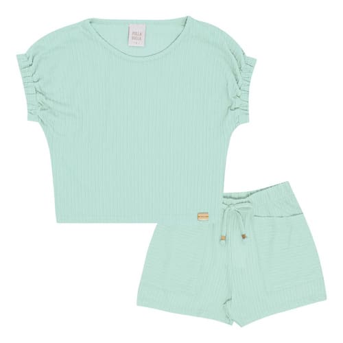 Básico e versátil para usar o conjunto ou criar novas composições para o dia a dia! Conjunto composto por blusa e short na cor tiffany em malha corrente. Short possuí bolsos frontais funcionais, elastano na cintura para maior conforto e amarração em laço com ponteiras de metal.