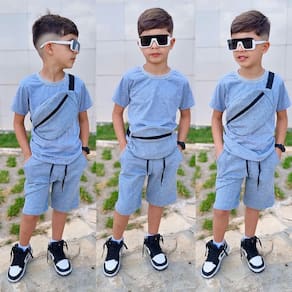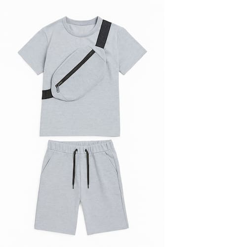 O Conjunto Camiseta malha 100% algodão, bermuda em moletom flanelado e Pochete com fechamento em zíper, é a escolha perfeita para os dias quentes da primavera e verão. Este conjunto é ideal para crianças que buscam conforto e estilo em suas atividades diárias. O material principal é 100% algodão, proporcionando suavidade e respirabilidade, essenciais para o bem-estar dos pequenos.O design moderno e prático do conjunto inclui uma bolsa pochete que pode ser usada na bermuda, ou no ombro, ideal para guardar pequenos objetos, tornando-o funcional para brincadeiras e passeios. A blusa combina perfeitamente com a bermuda, criando um visual despojado e atraente. Este conjunto é voltado para o público masculino, garantindo que os meninos estejam sempre na moda.