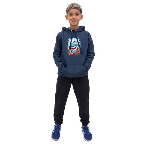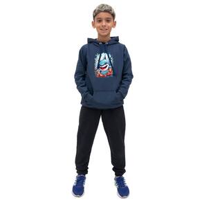 Conjunto Infantil Menino Blusa Manga Longa Estampa de Tubarao e Calça Lisa Moletom Confortavel - Azul Marinho - 12