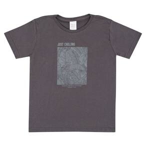 Praticidade para seu menino ficar ainda mais estiloso. Conjunto composto por camiseta meia malha na cor carbono com gola reforçada e estampa frontal com escrita "relaxando, aproveitando a beleza da natureza, vibrações do verão". Já a bermuda na cor índigo escuro jeans leve possuí elastano, bolsos funcionais e cadarços decorativos.